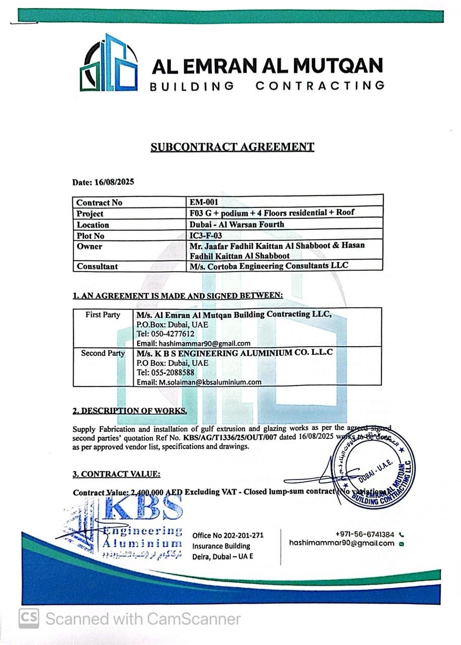 KBS Engineering Aluminium LLC. was formed in 2017 in Dubai & it is a member of Mohammad Bin Rashid Est (SME).
